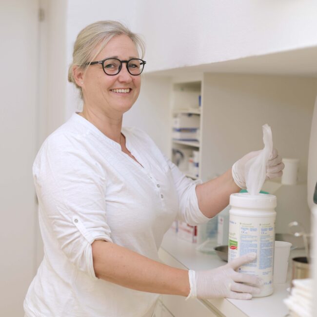 Ist für Labor, Hygiene und Endoskopie zuständig und assistiert bei ambulanten Eingriffen.